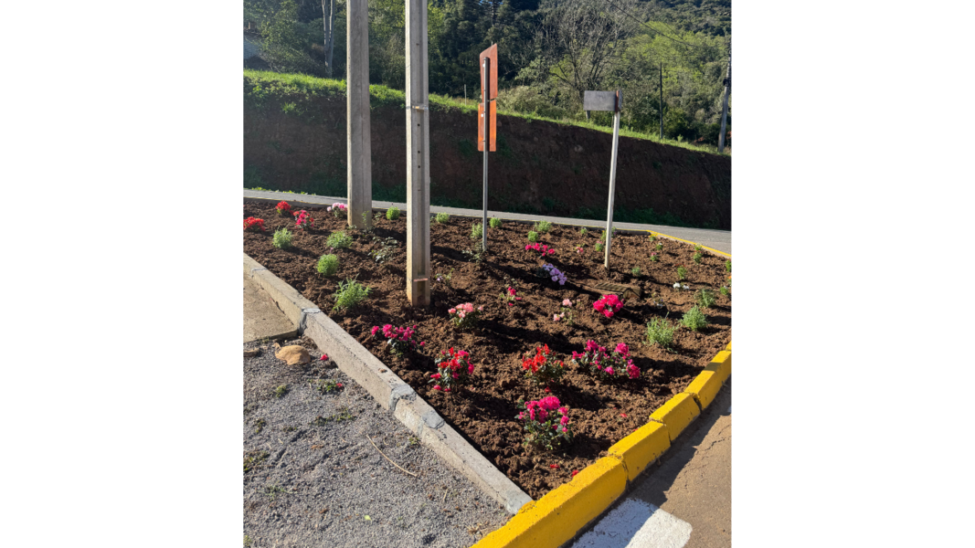 A Prefeitura de Boa Vista do Sul realizou a manutenção e limpeza de um canteiro na cidade, preparando o espaço para receber novas cores e vida. Em seguida, as moradoras Tere e Delires adotaram o local, plantando flores com dedicação e carinho.